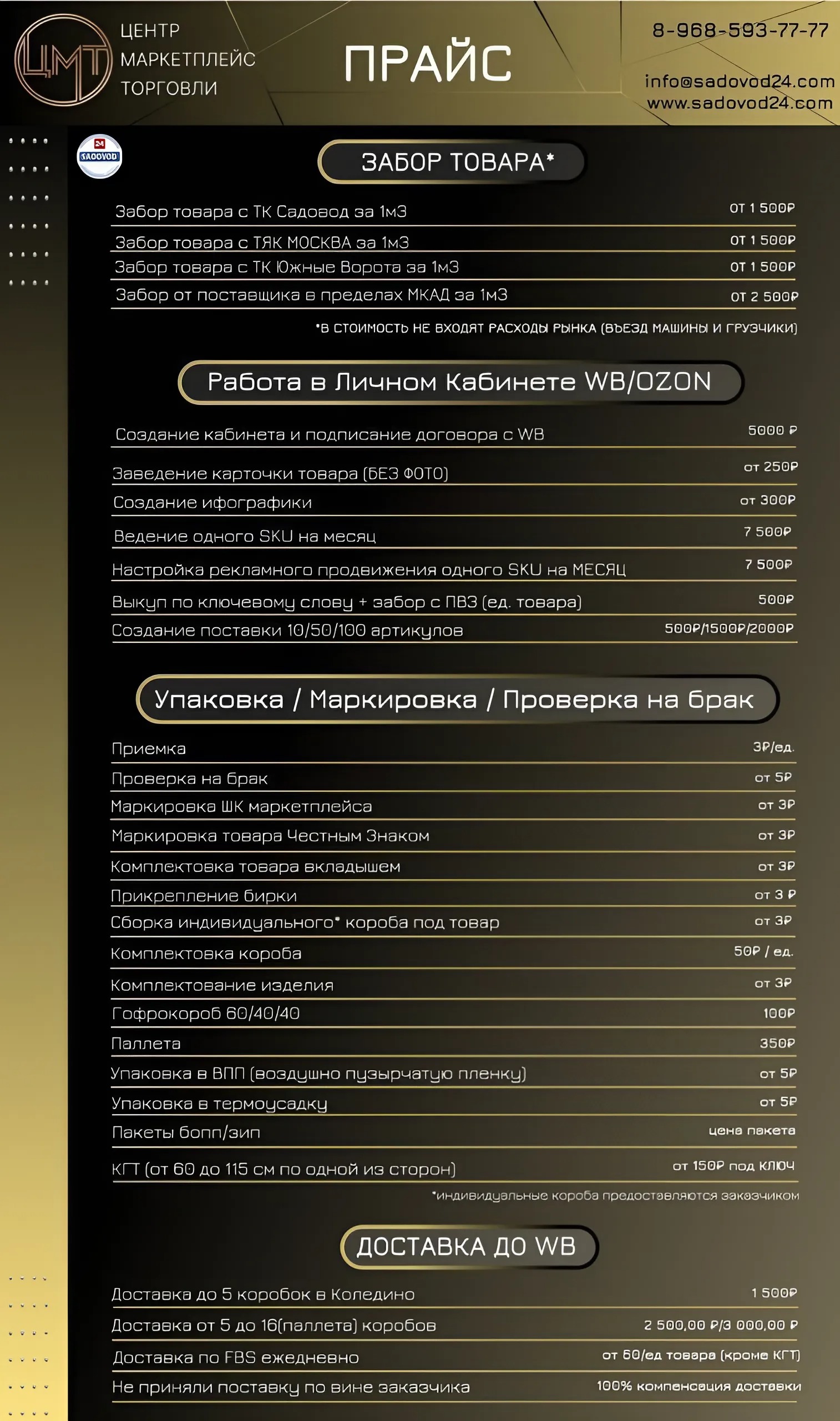 прайс лист на услуги фулфилмент-центра Садовод 24 (в формате Excel)